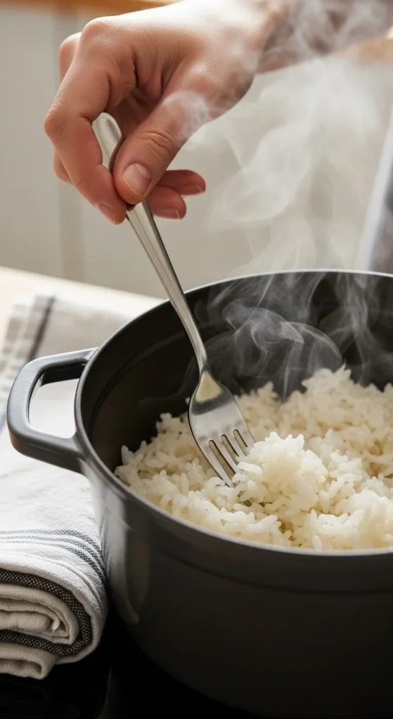 This resting step lets every grain absorb leftover steam for perfect fluffiness.