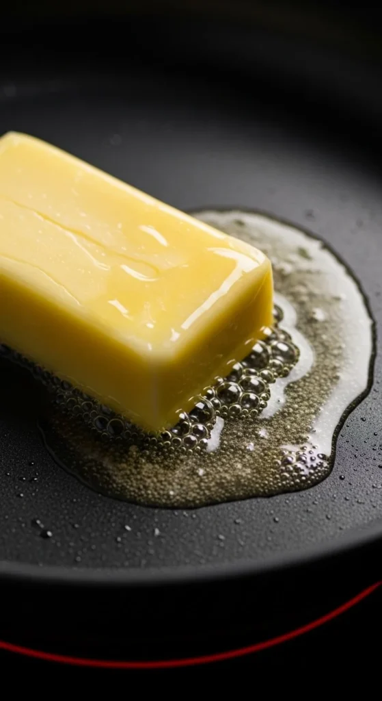 Butter should melt gently in the pan, not sizzle aggressively. This signals that the heat level is correct.