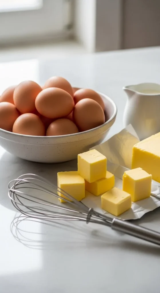 Creamy scrambled eggs start with a few basic ingredients. Each one plays an important role in creating softness and richness.