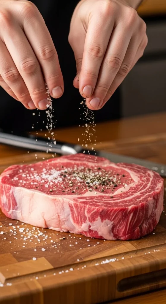 Season both sides generously. Don’t be shy — a good steak can handle salt.