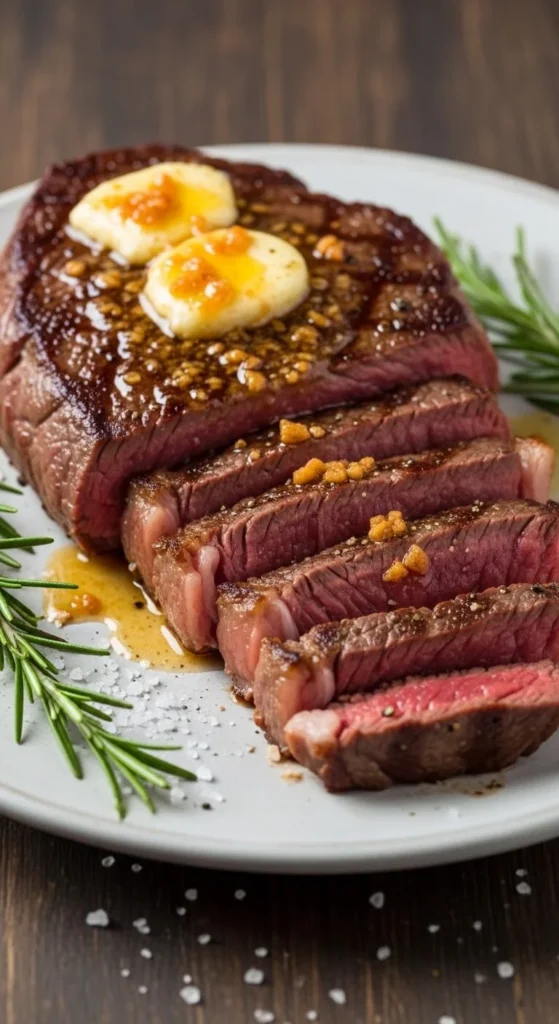 - Garlic butter ribeye — extra basting