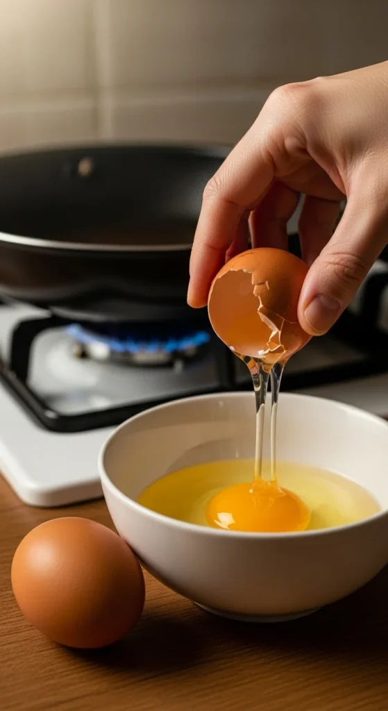 Skip cracking on the bowl edge — it often leads to broken yolks or shell pieces. Instead: