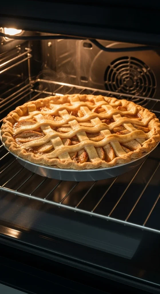 - Bake for 20 minutes, then lower the temperature to 375°F (190°C) and bake another 35–40 minutes, until the crust is deep golden and the filling bubbles.