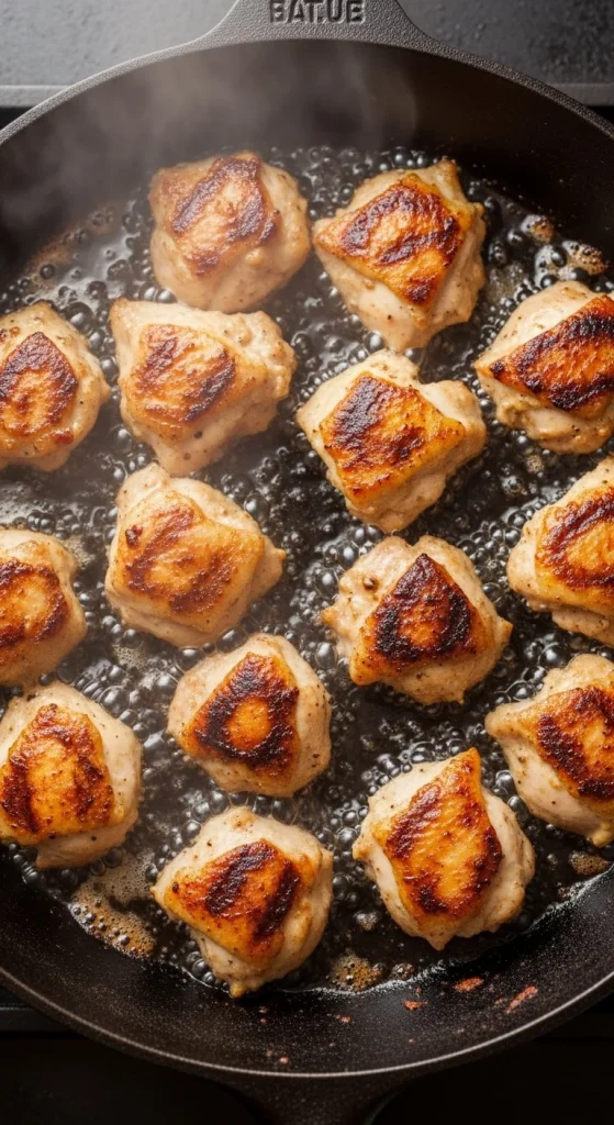 Set the cooked chicken aside — it’ll finish cooking in the sauce later.