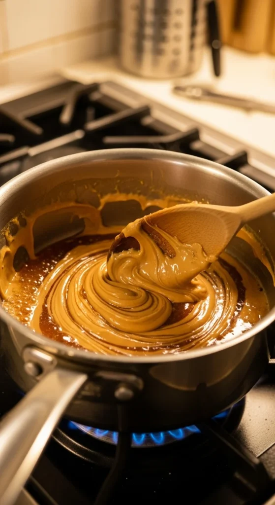 You want a warm, thick mixture that coats everything evenly — this is your glue!