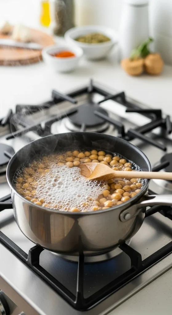 - Option 2: Boil the chickpeas for 10 minutes with ½ teaspoon baking soda. Drain and rinse. The skins will slip off easily, and the chickpeas will soften beautifully.