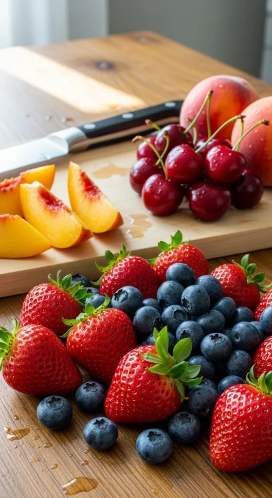 Once you’ve picked your fruit, give it a quick rinse and chop it into small pieces. If you’re using berries, just remove the stems.