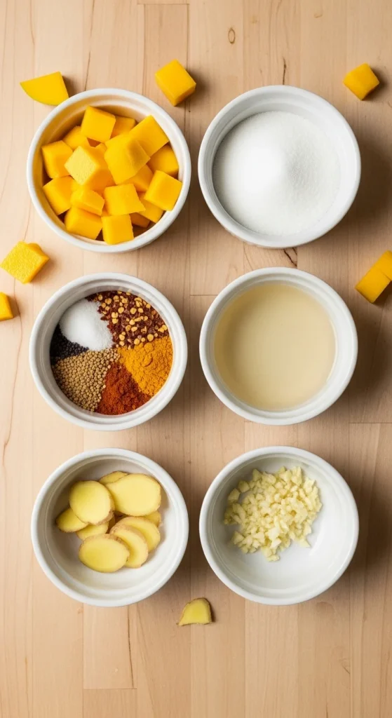 Mango chutney is all about layering flavors — sweet, sour, and spicy. Here’s what you’ll need for a classic version: