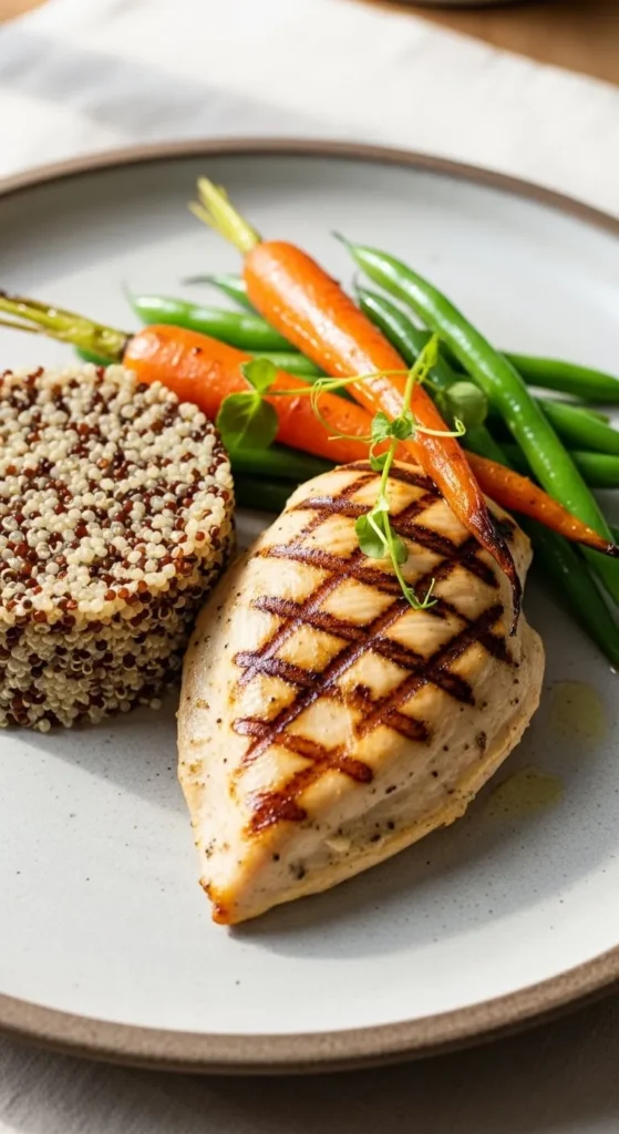 - One simple protein like chicken, fish, eggs, or tofu