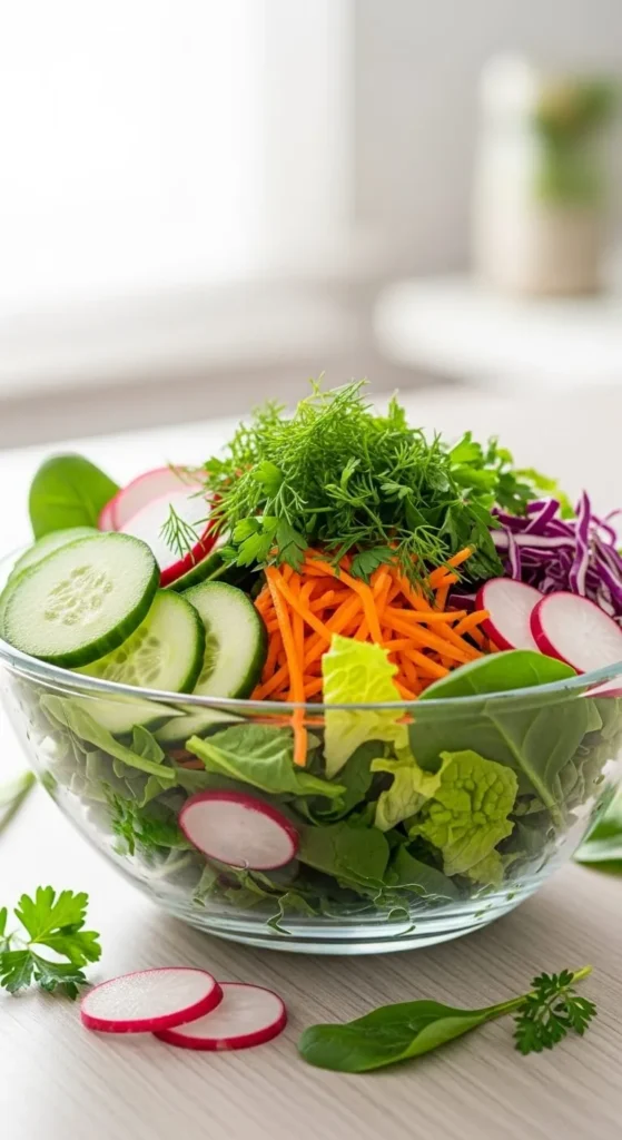 - Vegetables for volume and freshness