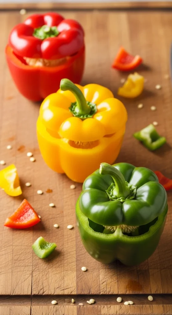 Start with firm, fresh bell peppers. You can use any color — each one brings something unique: