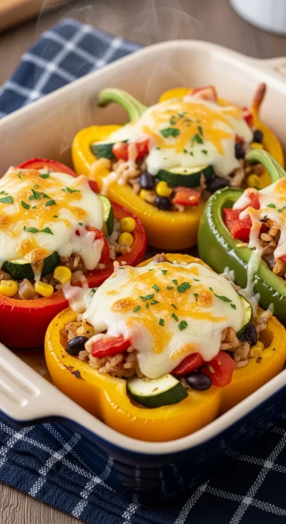 Stuffed peppers are one of those dishes that look fancy but are incredibly easy to make. They’re colorful, wholesome, and endlessly customizable — whether you want something light and veggie-forward or rich and cheesy.
