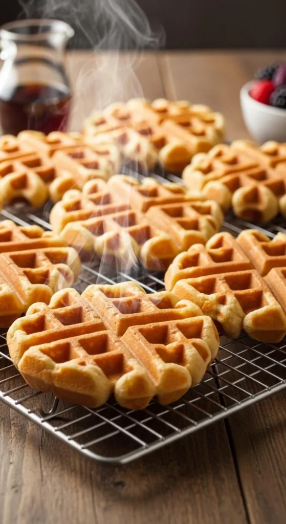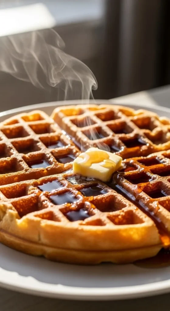 Imagine lifting a waffle from the iron and hearing that slight crackle as it cools — crisp edges, golden color, and steam rising gently. That’s the goal.