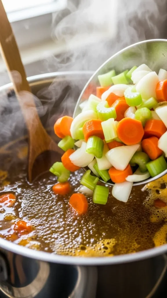 Low heat keeps the broth clear and soft in flavour. Rushing this step makes soup feel heavy instead of soothing.