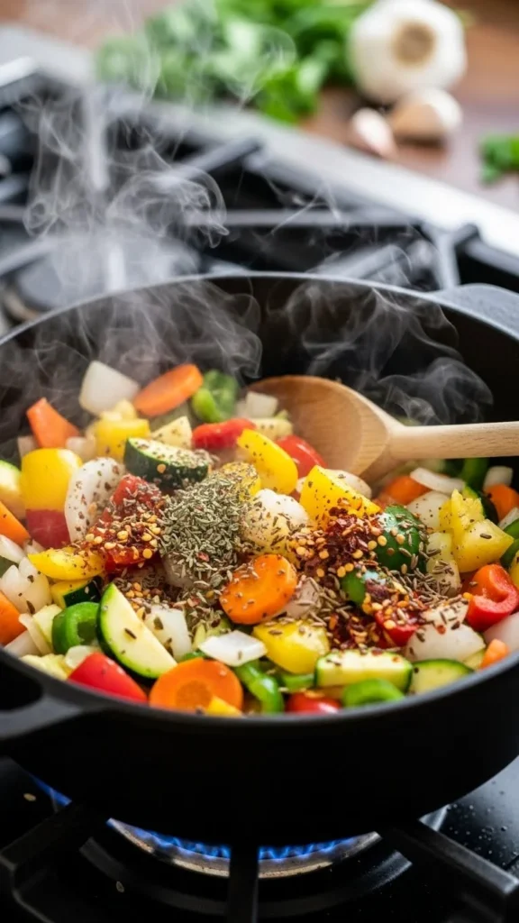 - Sauté aromatics — Start with onions, garlic, or leeks.