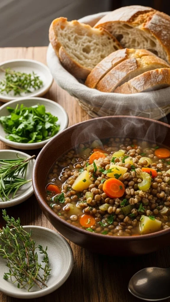 Cook lentils, barley, tomatoes, and winter veggies for a filling, earthy dish.