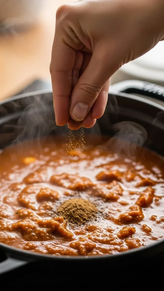The spices deepen. The sauce thickens. The flavour becomes rounder and warmer.
