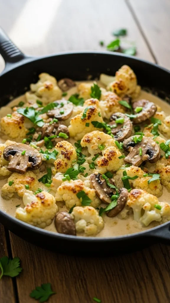 Try a Simple Low-Carb Winter Recipe: Creamy Cauliflower & Mushroom Skillet