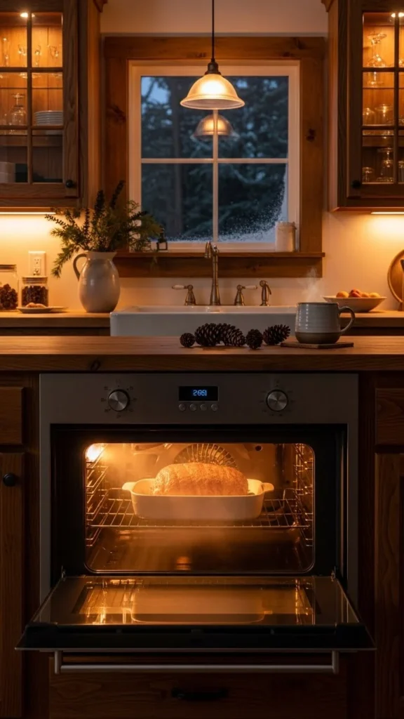 Turn the oven on earlier than needed. Even before cooking starts, the warmth helps heat the kitchen. As food bakes, the temperature stays steady, making the whole space feel cosier.