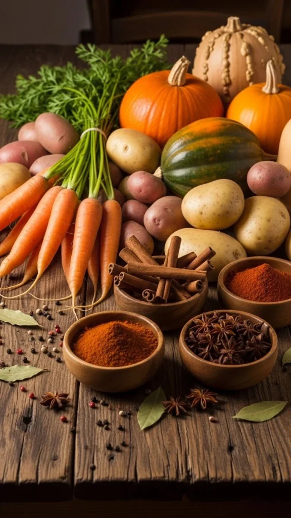 - Warming spices such as cinnamon, nutmeg, paprika, and cumin