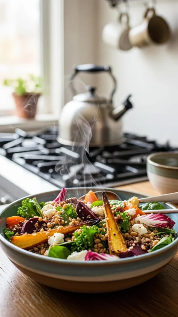 Warm winter salads are all about heat, texture, and balance. Roasted vegetables, hearty grains, warm proteins, and rich dressings turn a salad into a proper meal.