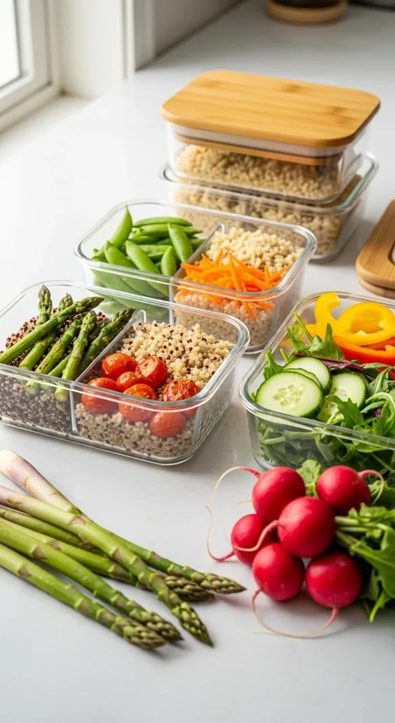 Spring meal prep works best when it stays flexible. Focus on seasonal ingredients, simple cooking, and mix-and-match components. When you prep this way, meals feel lighter, brighter, and far less repetitive.