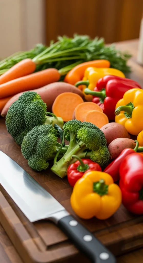- For root vegetables, aim for slightly smaller cuts since they take longer to cook.