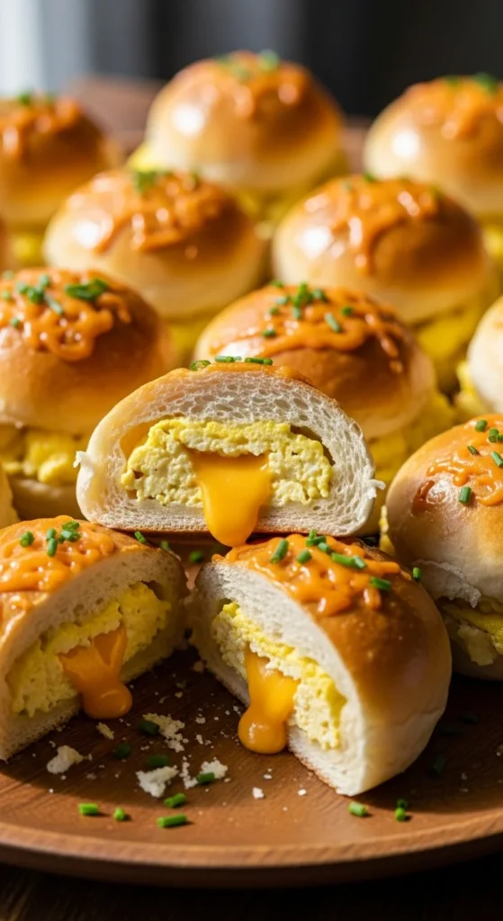 Fill rolls with egg and cheese. Warm briefly.
