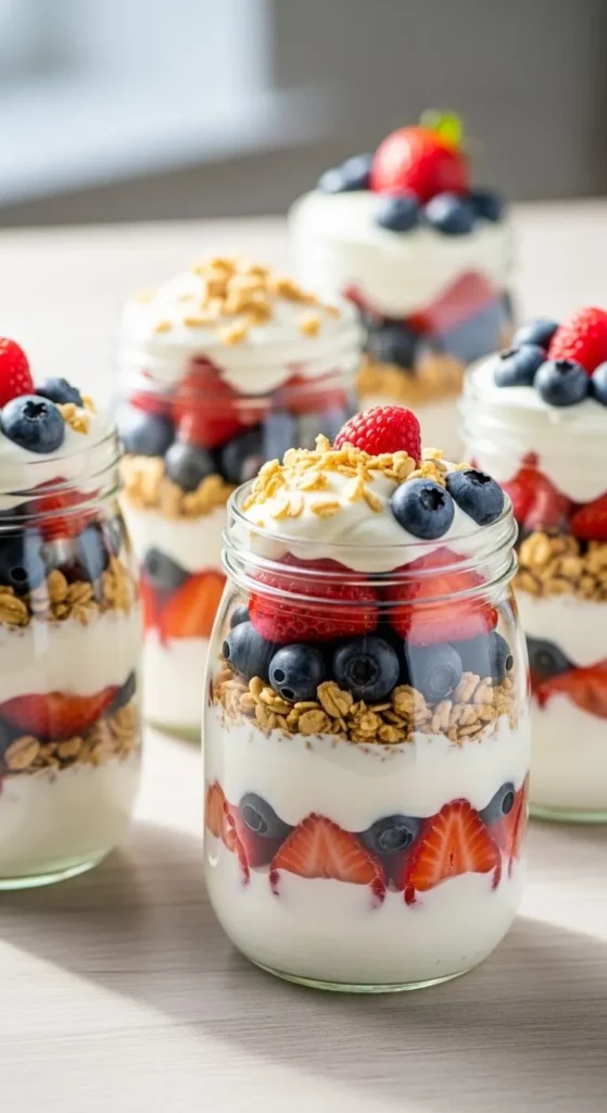 Serve cold with extra berries on top. Add a small mint leaf for freshness. Clear cups show the layers best. Keep chilled until ready to eat. Great for picnics and brunch tables.