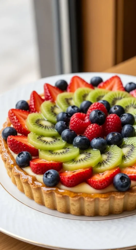 This spring fruit tart shows off seasonal fruit in every slice. The custard is smooth and lightly sweet. A crisp crust supports the filling well. Visually striking and fresh. Great for celebrations.