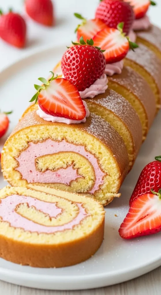 19. Vanilla Strawberry Roll Cake
