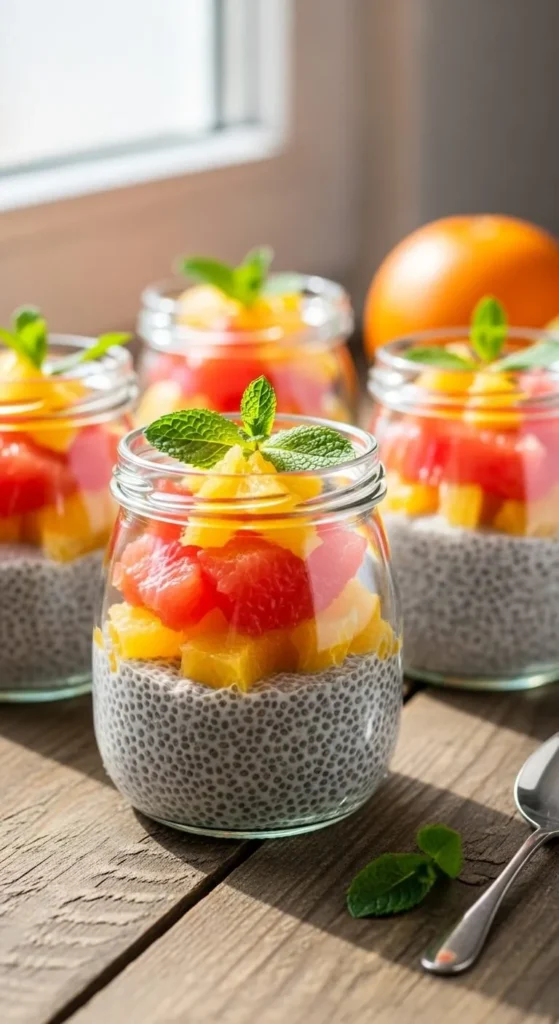 Serve cold. Top with fresh citrus. Use clear jars for layering. Add mint if desired. Keep refrigerated.