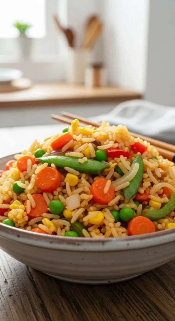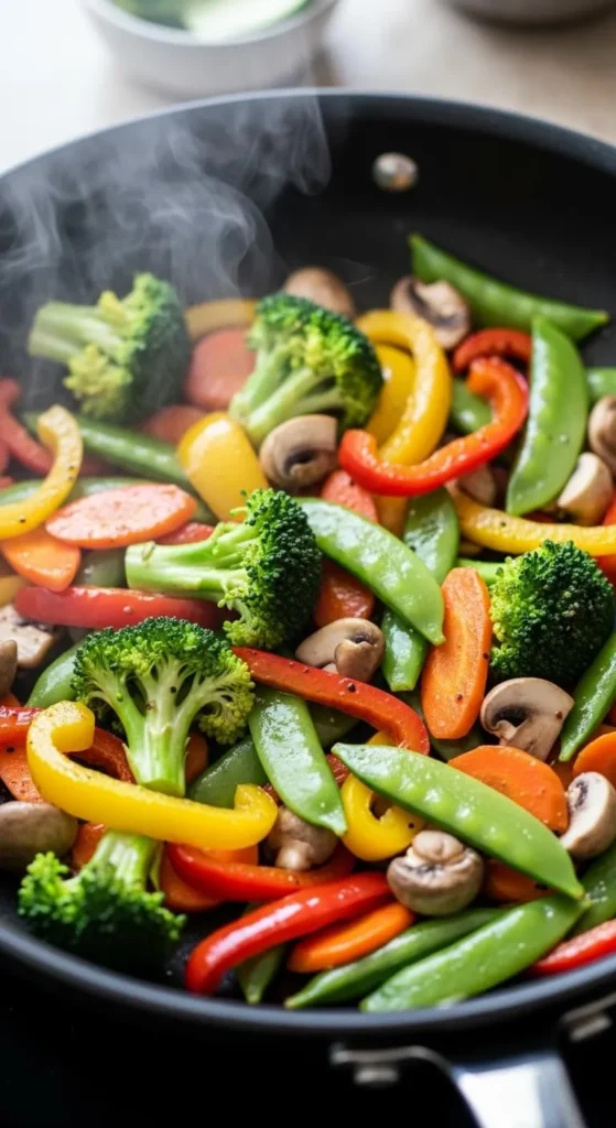 This veggie stir fry is quick and colorful. Fresh vegetables cook fast. Simple seasoning. Perfect for busy days. Healthy and filling.