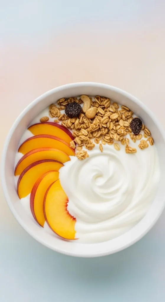 This bowl feels smooth, fruity, and light. Peaches bring natural sweetness and color, making it perfect for spring mornings when fruit starts to shine.