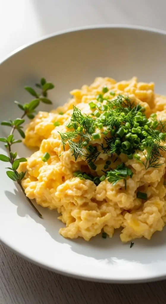 Serve with toasted sourdough or fresh fruit. Add chopped herbs on top. A spoon of cottage cheese on the side works well. Best enjoyed right after cooking.