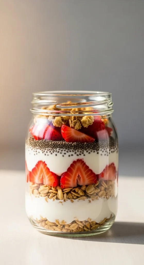 Top with extra strawberries or sliced almonds. Serve in clear jars for brunch tables. Add a mint leaf for color. This pairs nicely with iced green tea or cold brew coffee.