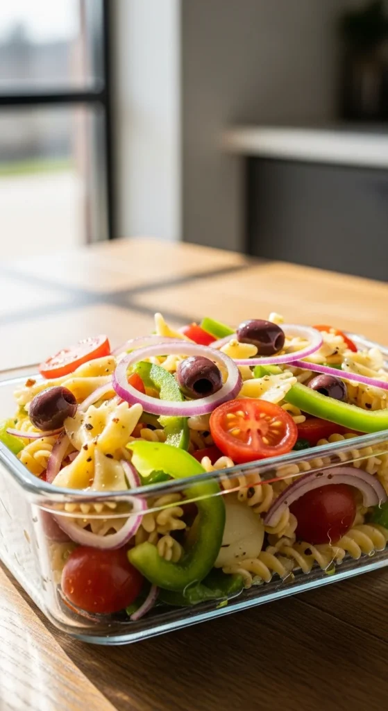 This pasta avoids heaviness and reheats cleanly.