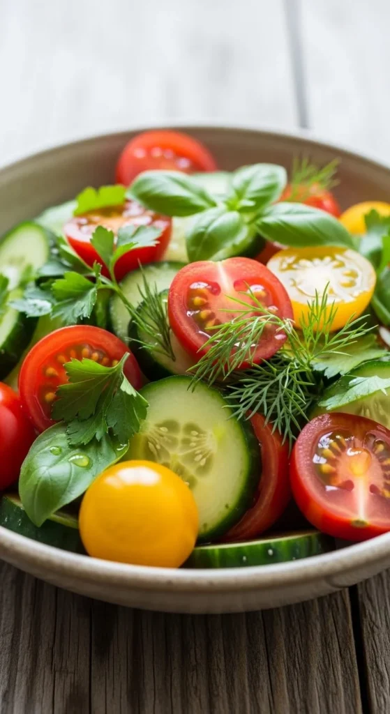 Cool cucumbers shine here. Slice thin and toss with plain yogurt, lemon juice, salt, and chopped dill. This feels rich without being heavy.