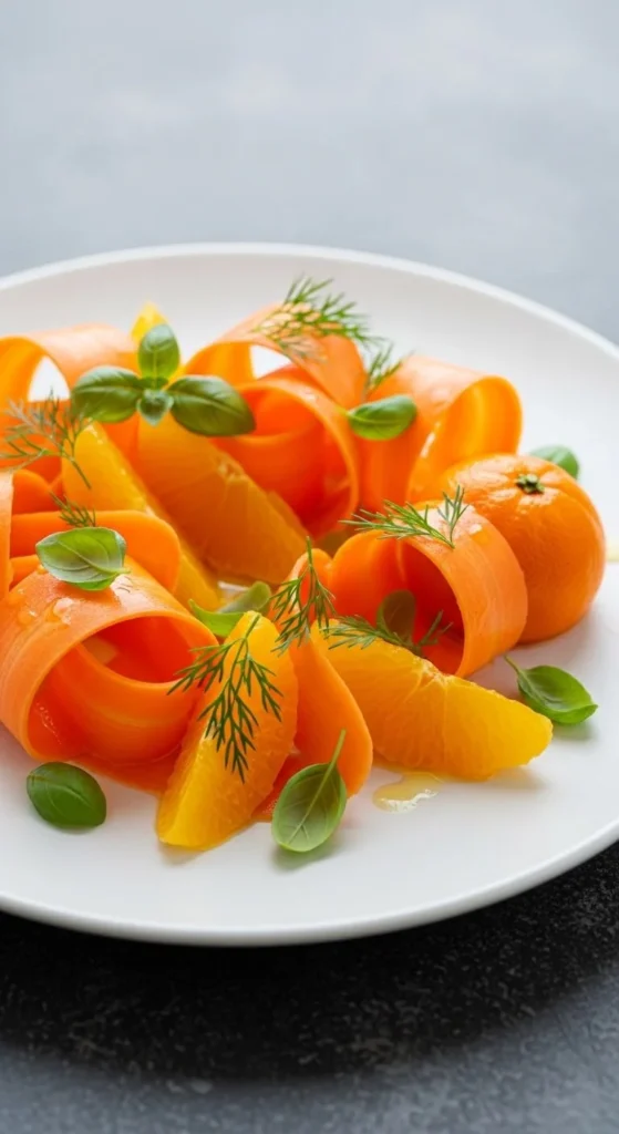 Use a peeler to shave carrots into ribbons. Toss with orange slices and a splash of citrus juice. Add herbs if available.