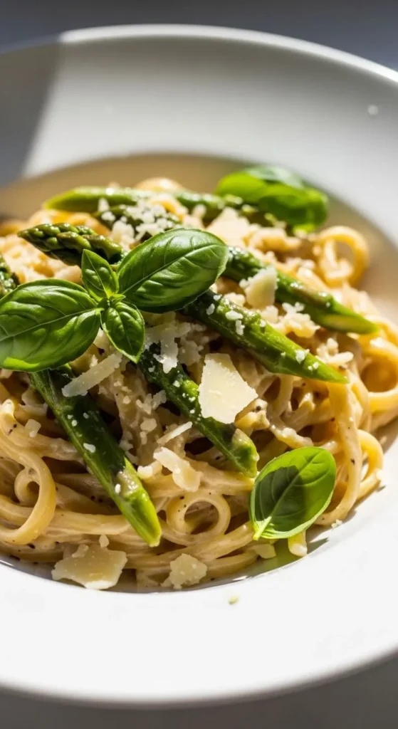 This pasta is creamy, fresh, and full of spring asparagus flavor, perfect for a quick dinner.