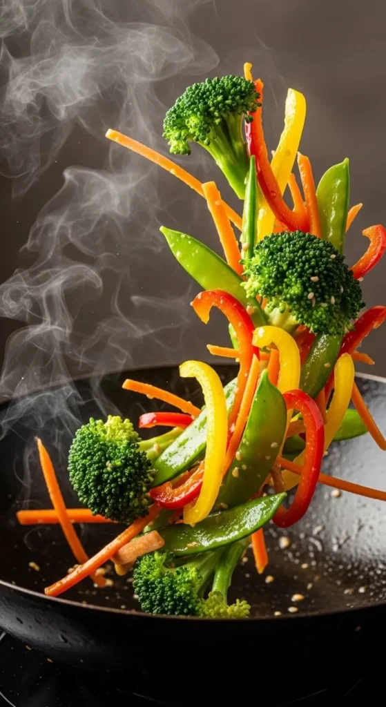 - Add vegetables and stir fry for 5 minutes.