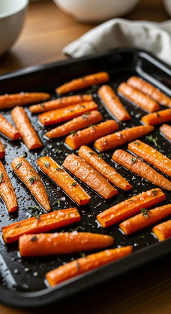 Carrots roast well and cost very little. Slice them evenly. Toss with oil, salt, and a small spoon of honey. Roast until soft with light browning.