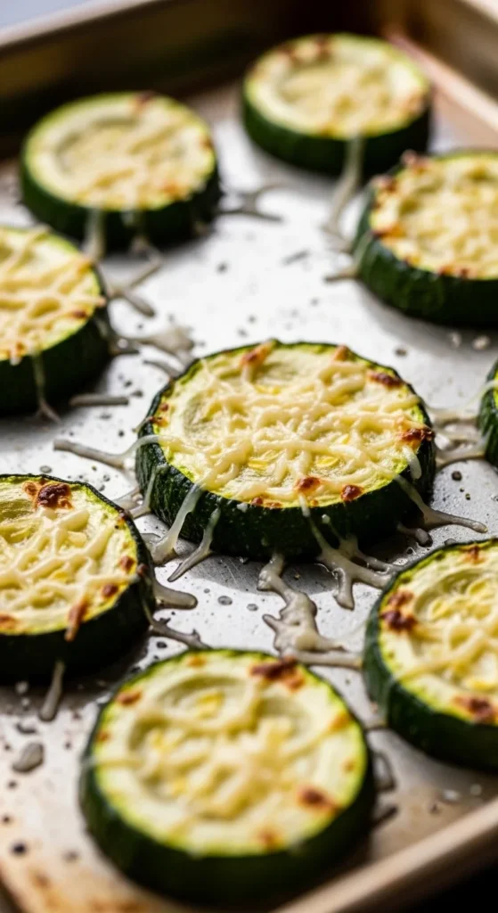 Slice zucchini into thick rounds. Toss with oil and salt. Roast until tender. Sprinkle grated cheese during the final minutes.