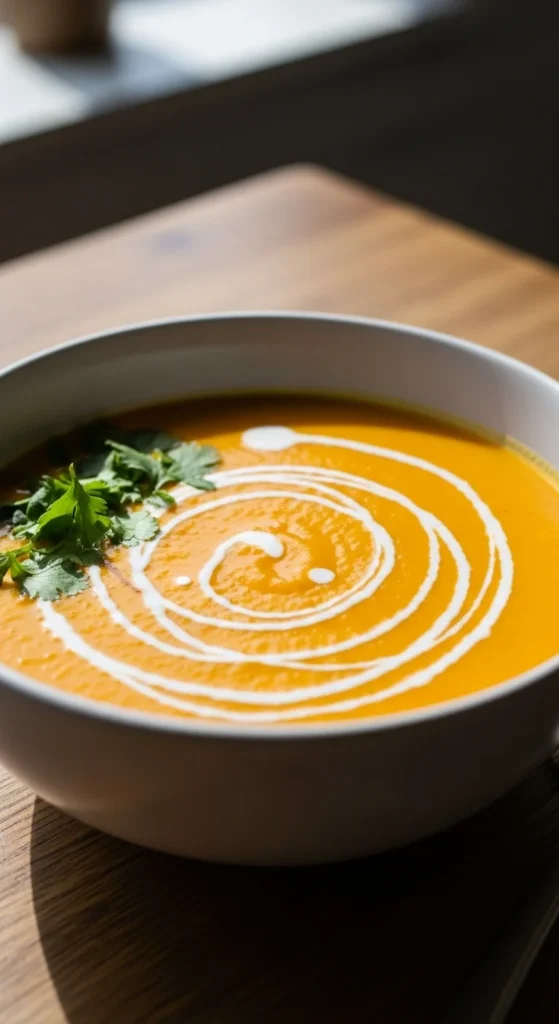This soup feels light but holds well. Carrots cook down quickly. Ginger adds warmth. Coconut milk gives body. Blend until smooth.