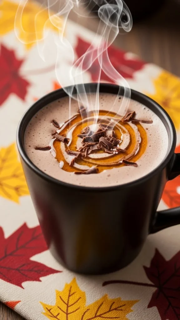 Heat milk, mix cocoa powder, and stir in maple syrup.