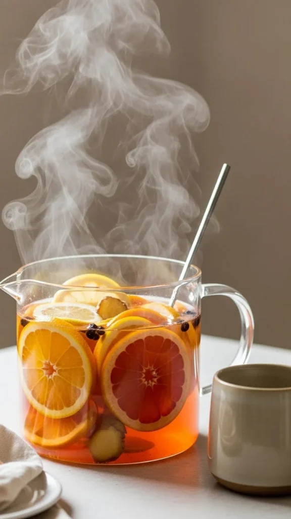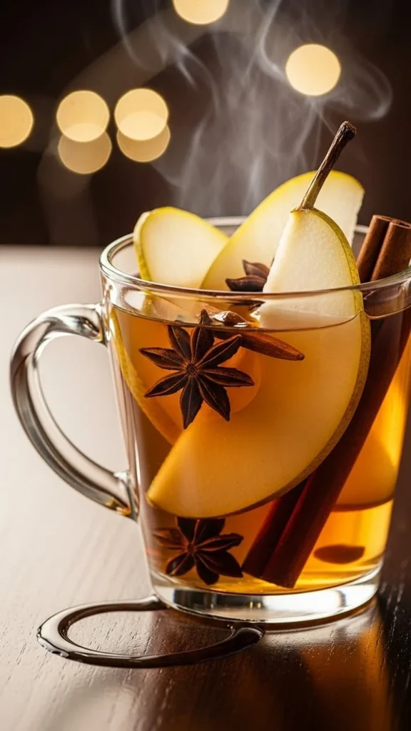 Simmer pear juice with cinnamon, cloves, and a splash of lemon.