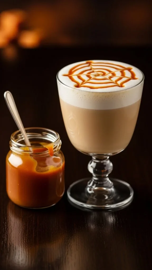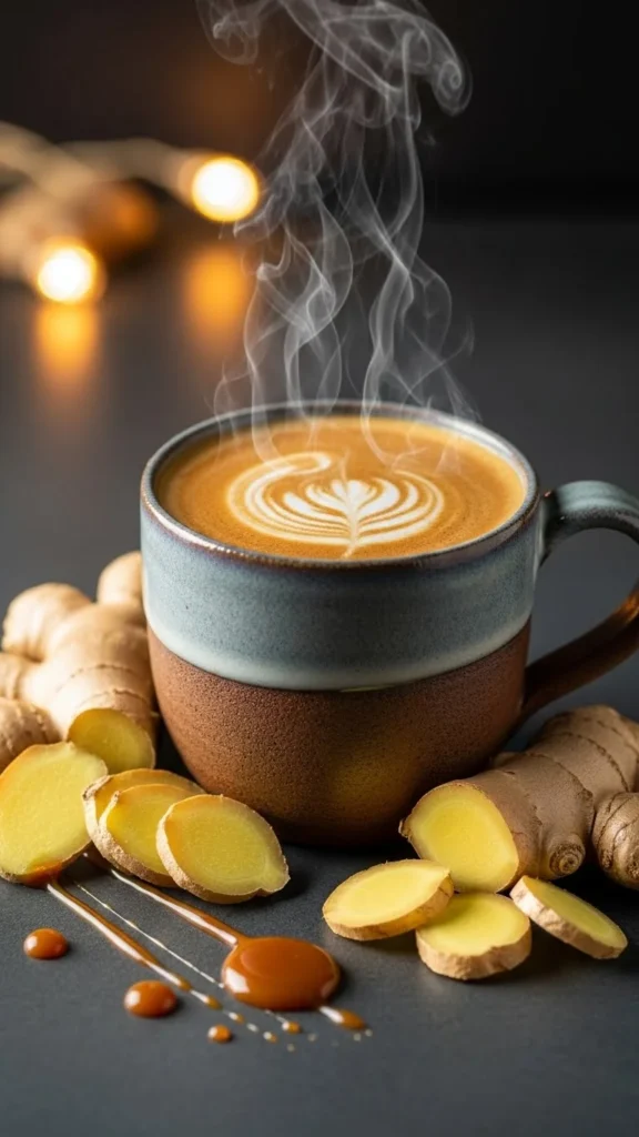 Simmer ginger slices in water. Add milk and a spoon of caramel sauce.