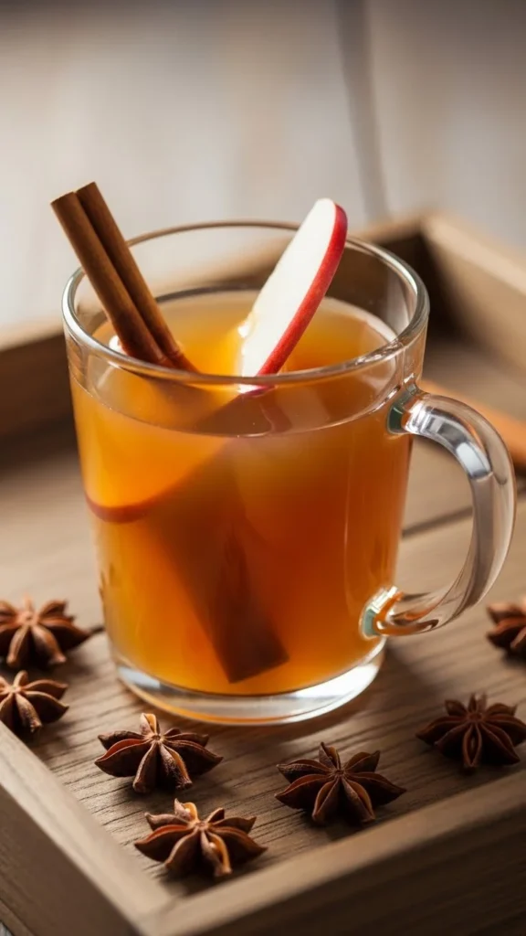 Warm apple cider with cinnamon feels cosy and seasonal.