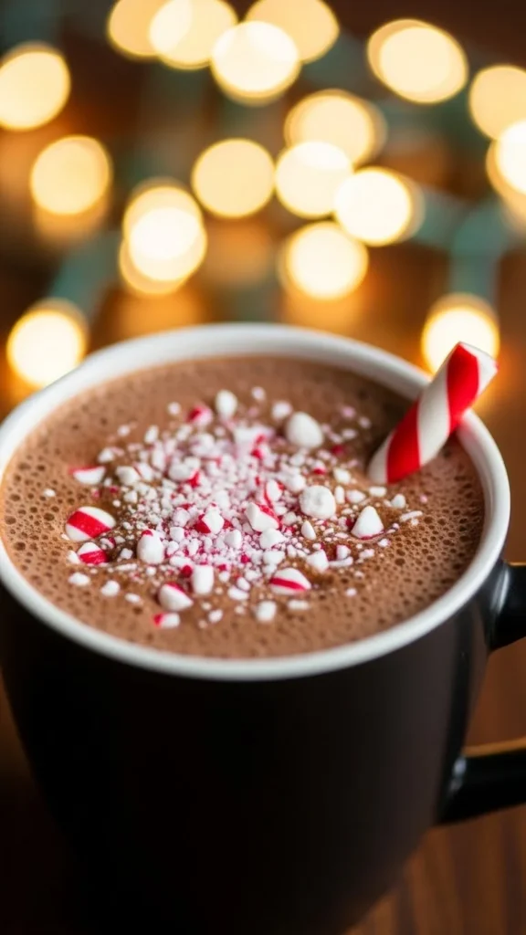 Mix cocoa powder, sugar, and warm milk. Add crushed peppermint candy.