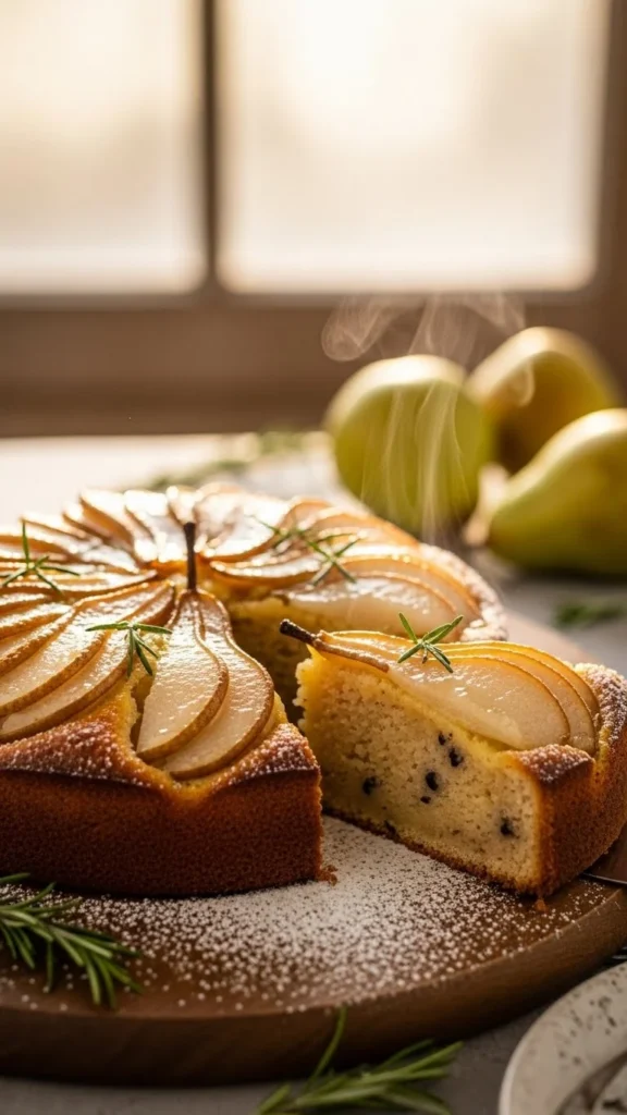 Pears bake softly. Cardamom adds warmth. This cake suits quiet evenings.